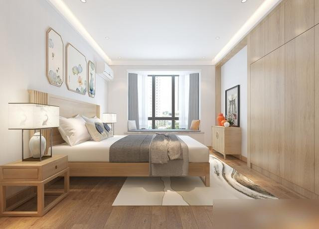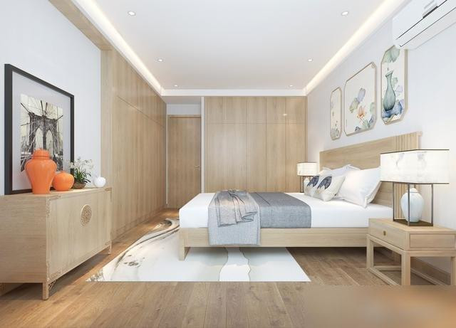 主卧的设计最实在,没做复杂吊顶,省了钱还显高,三幅艺术画挂床头,简单又有品味。