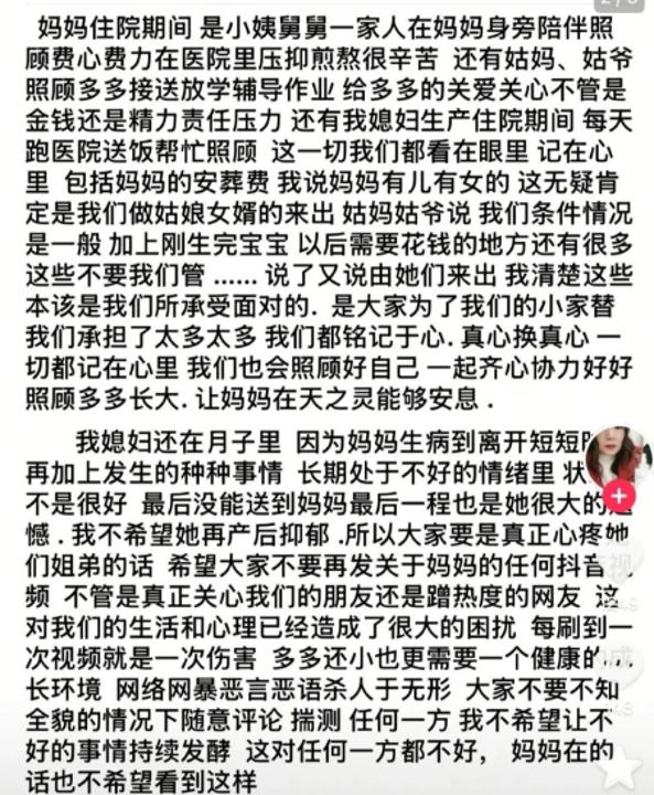 之后该博主女婿再次发文怀念母亲,并呼吁大家不要对此事胡乱猜测和网络暴力其家人。